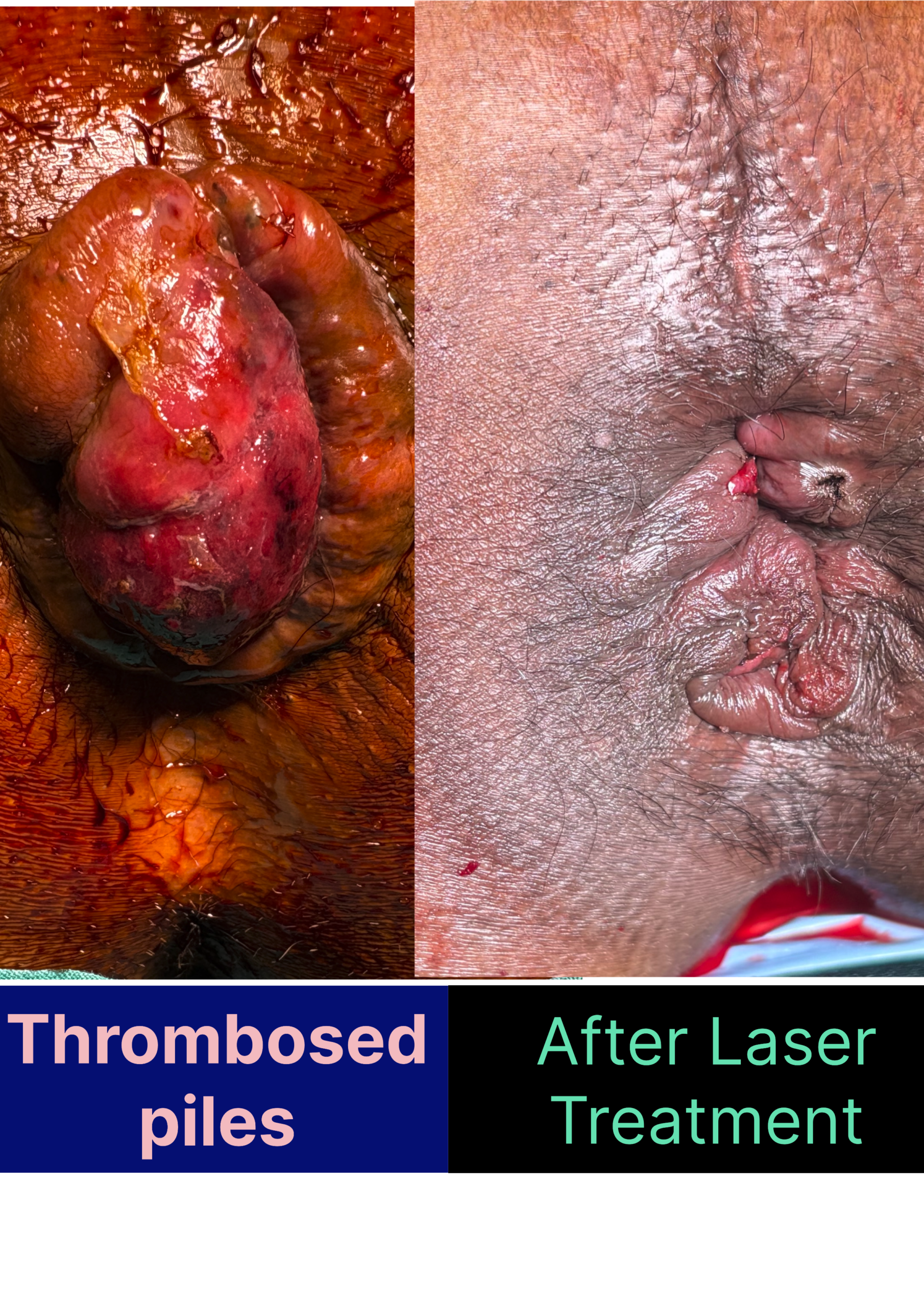 Yes, laser treatment is a highly effective, minimally invasive options for thrombosed piles after evacuation of hematoma working by using focused laser energy to shrink swollen veins, coagulate blood vessels, and cut off blood supply, leading to less pain, minimal bleeding, and faster recovery than traditional surgery.
